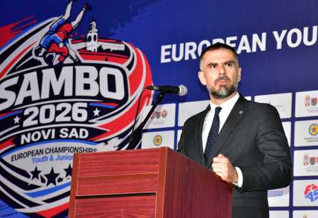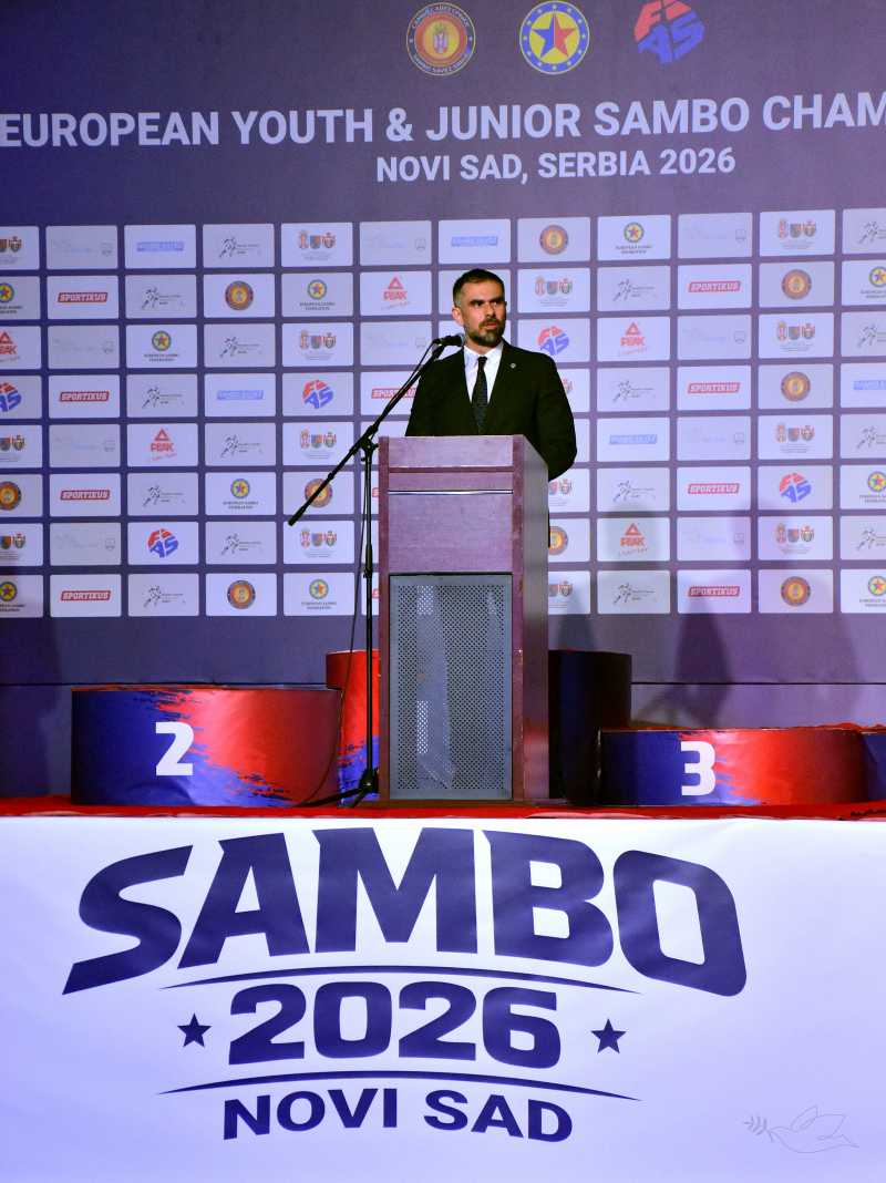 Градоначелник Новог Сада Жако Мићин обратио се на церемонији свечаног отварања Европског првенства у самбоу за младе и јуниоре, које се одржава у периоду од 21. до 23. априла 2026. године у Малој сали СПЕНС-а. Он је пожелео срдачну добродошлицу свим учесницима и гостима, истичући значај овог такмичења за град и спортску заједницу.